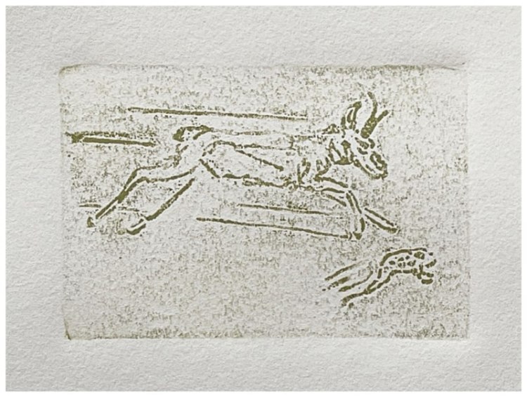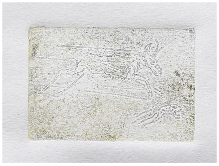 “Think Fast Ghost” 2.5″ X 3.5″ Etched Bronze Print on Stonehenge Polar White
