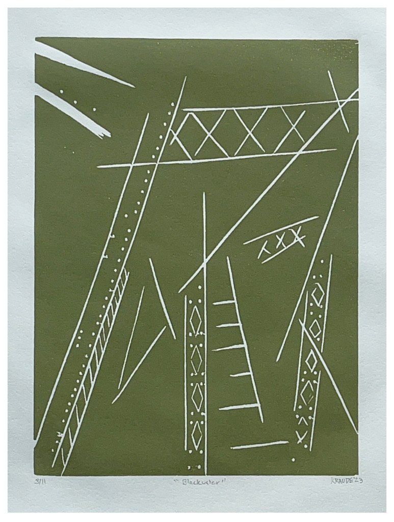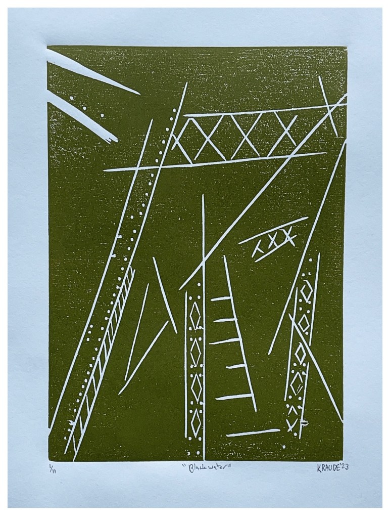 “Blackwater” 6″ X 8″ Handpressed Woodcut Print on Handmade Japanese Paper