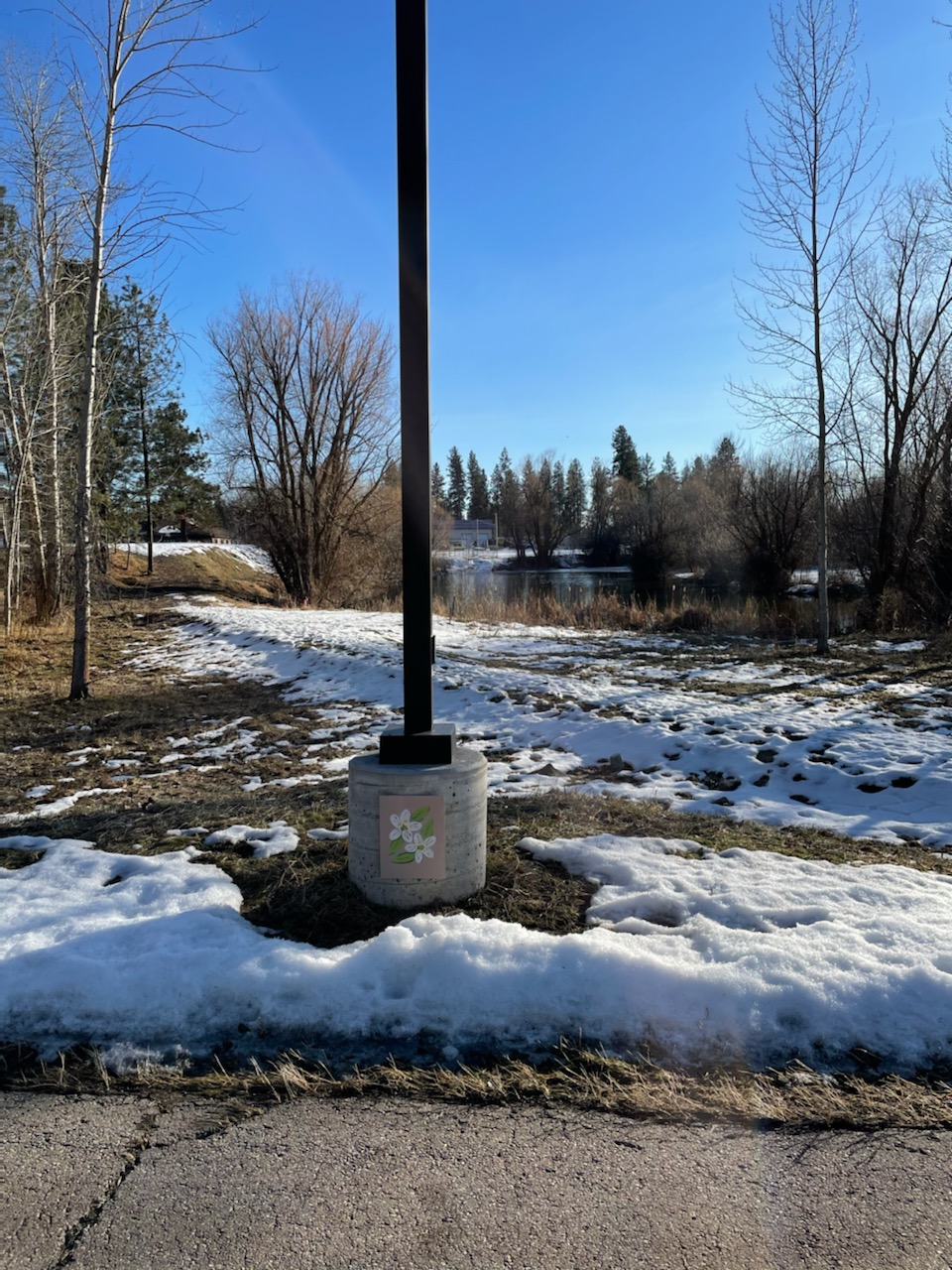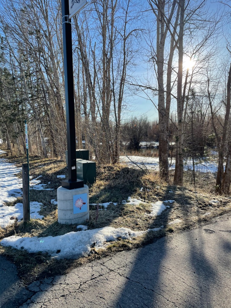 I have been told to look for blank spaces that are in need of a mural for a long time now. The same person who told me that always talked about wanting to see the blank light pole bases along the campus touched with color. Maybe he was sowing the seeds in my head that wound up with me being here today. I don’t have the time to do all the poles on campus so I went about to find which ones I could accomplish during this class while not falling behind on my studies in my other courses. I chose the hill leading to the new part of campus by the quarry pond because it has always been a relaxing place with the sounds of birds chirping in the trees where you can watch the ducks do their duck business. Public art can increase foot traffic and maybe more art being concentrated in this area will draw attention to the memorial bench and the Native Plant Restoration project which are in the same area. These pictures up above are a quick preview of what the end product will look like. You can click on them to enlarge the pictures if you would like.