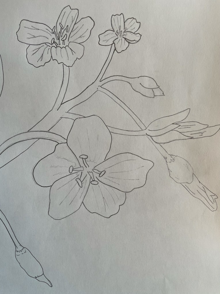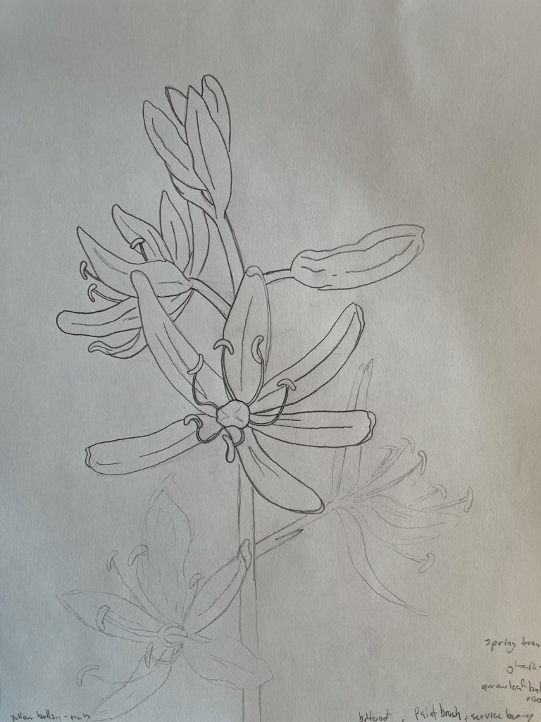 When I was thinking of what would make a good miniature mural subject I wanted to pick something that is important to the campus culture. I landed on the flowers of culturally important edible plants. After consulting with my mentor and acquiring a list of plants I started studies in pencil. When I was confident in the form of these species I went on to designing stencils. I wanted to create minimalist designs while learning a new medium. If you don’t think the stylized designs will fit well with campus culture I will be more than happy to use more of a traditional painting method for the murals. Thank you very much for your time and considering me and my proposal.