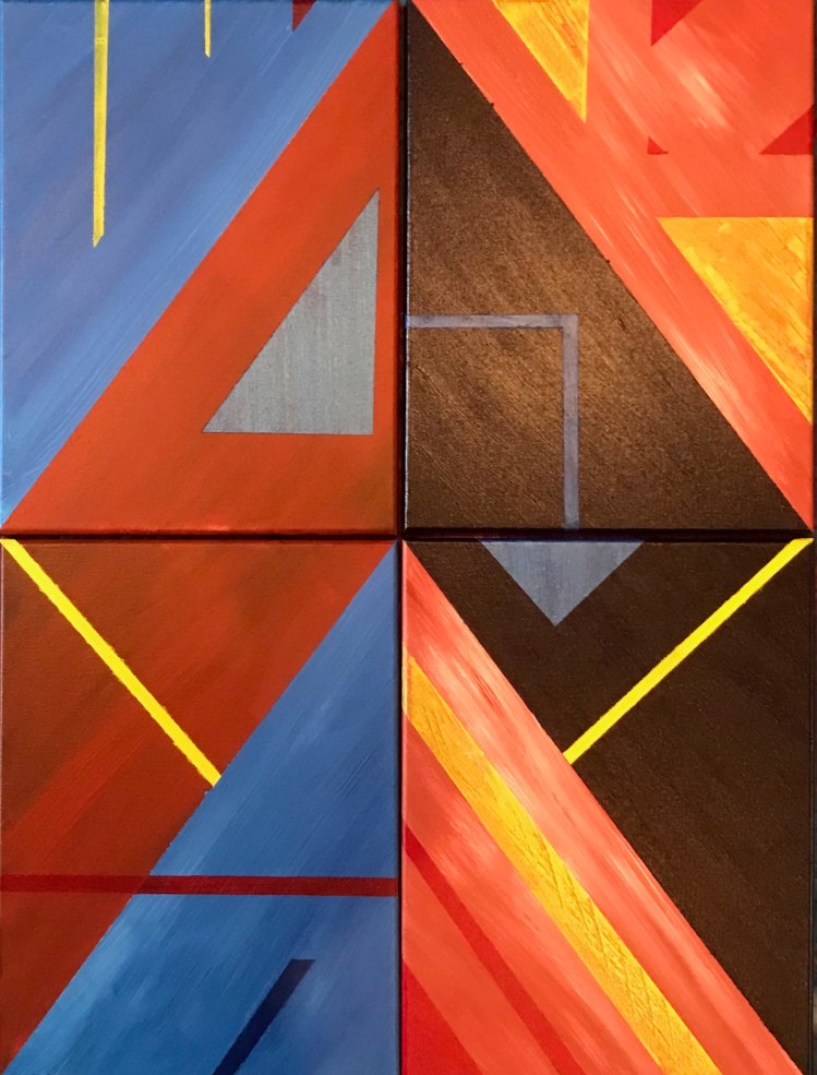 I chose to feature this abstract quadric because it demonstrates the taping technique I learned during my time at SKC. I used different combinations of depths and different widths of tape to try and make a cohesive piece that works while being arranged in many different ways. I am highlighting taping because it is tempting to continue with as a whole in abstracts but can be used to any other style beside abstract as well.