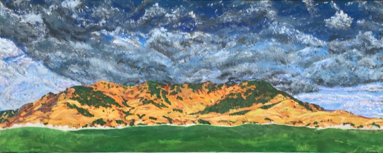 This was my first piece where I have used under painting to give a painting more of a fullness and depth of feel. I painted all three layers; the background, mid, and foreground in different colours to try and give the painting as a whole a more fullness and depth.